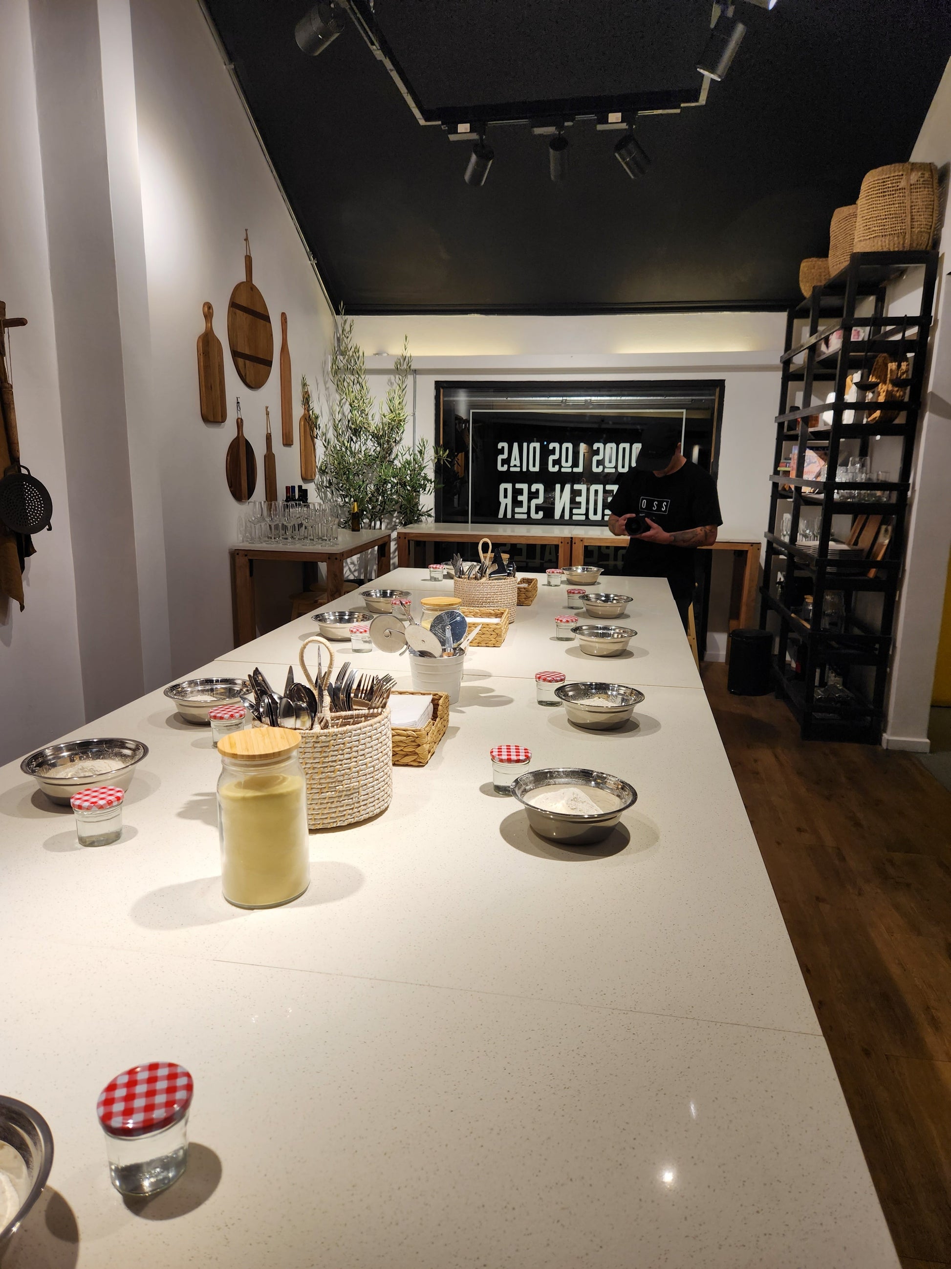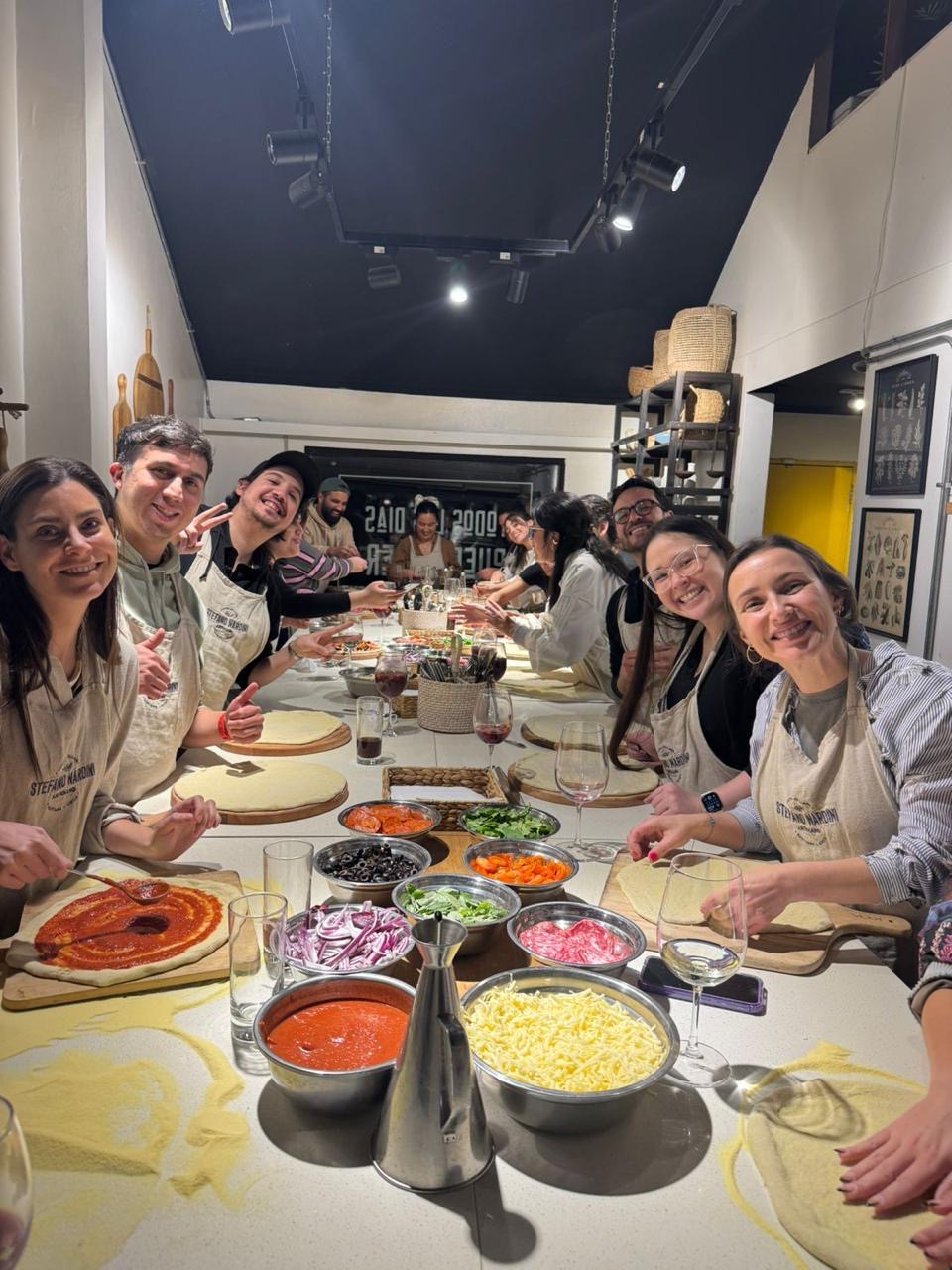 Clases de pizza para empresas en Santiago, una experiencia única de team building gastronómico. Ofrecemos talleres privados y personalizados donde tus colaboradores o clientes aprenden a preparar auténticas pizzas artesanales, con masa fermentada en frío por 72 horas e ingredientes premium. Nuestro espacio cuenta con proyector, pantalla y equipamiento completo, ideal para charlas, presentaciones y actividades internas de tu empresa.